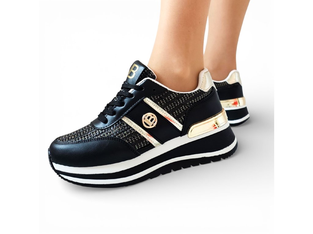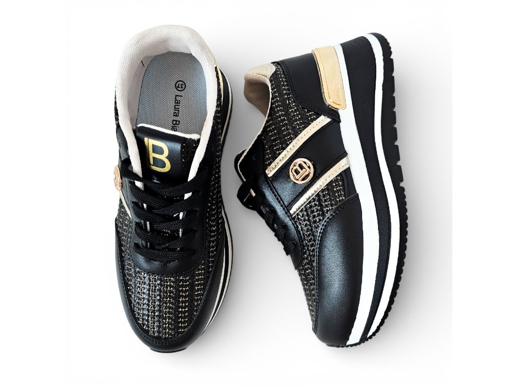 📍 Pokud hledáte černé tenisky, které stojí na kvalitním zpracování, jemném zlatém detailu a vyvážené platformě, černé tenisky na platformě Laura Biagiotti Calf Black Gold zapadnou do vašeho stylu přirozeně a s jistotou.