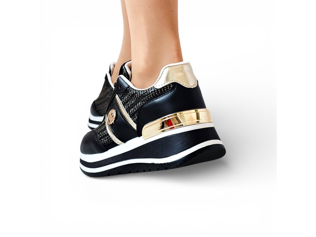 Černé tenisky na platformě Laura Biagiotti Calf Black Gold – elegance postavená na detailu